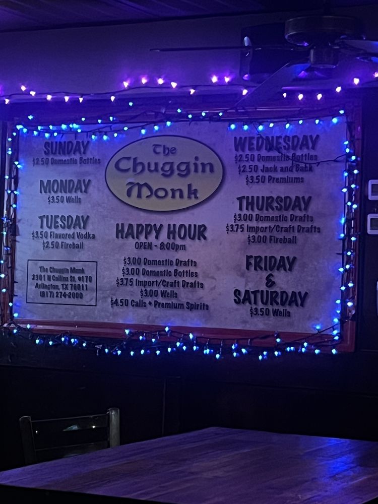 With its blend of good food, an extensive drink selection, and a welcoming ambiance perfect for gatherings, The Chuggin' Monk stands as a go-to destination for both locals and visitors seeking authentic Arlington charm. For inquiries or to check out upcoming events, feel free to call them directly at 817-274-2000.